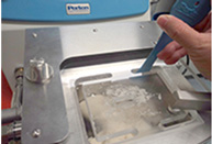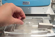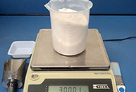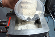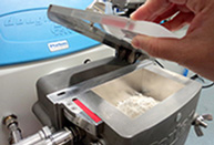 ミキシングボウルのカバーを開けて秤量したサンプルをボウルに移します。 |